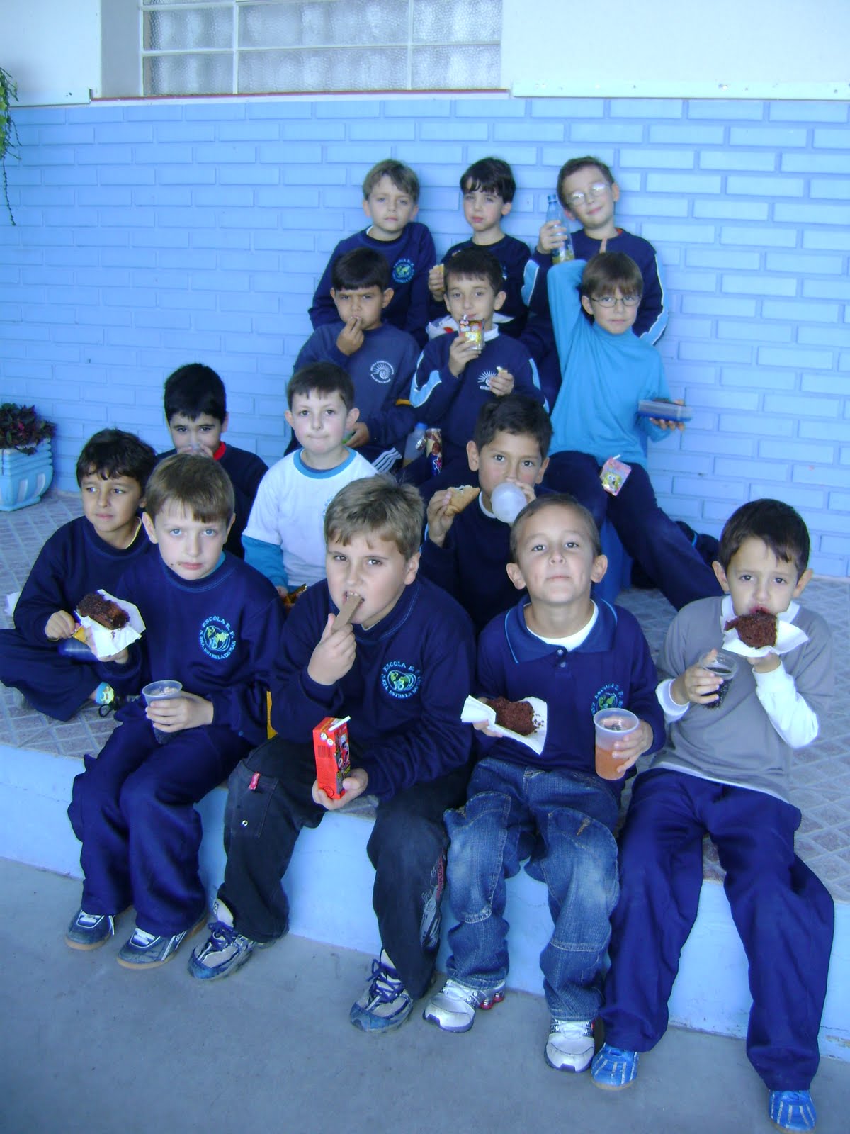 OS ALUNOS DA TURMA 121, da Professora Maristela, adoram sentar num banco de madeira que a diretora colocou na área. Eles pediram para a professora tirar uma foto deles e colocar no blog da escola.